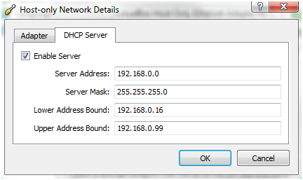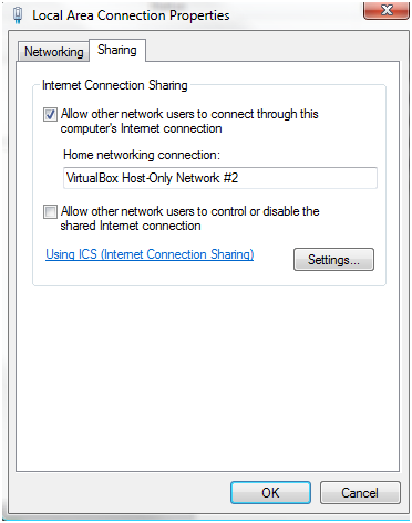 d setup Internet Connection Sharing. You can see in the image that you share with the Host-Only Adaptor you have just created. When this happens on Vista you get a warning that your Host Adaptor will be set to an IP of 192.168.0.1. That’s fine, apart from the fact that there appears to be a bit of a bug with VirtualBox in that when you initially create the Host-Only Adaptor you get an IP of 192.168.135.1 assigned to it and if you use the built-in DHCP the instinct is to assign the address range 192.168.135.0/24.