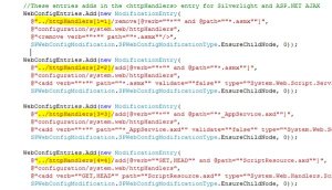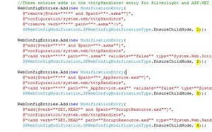 Unfortunately that is incorrect! The sequence numbers seem to have absolutely zero impact, because no matter what I did my web.config would not come out how I wanted. Searching around the internet nearly all examples do not set the sequence number, leaving it a zero. Luckily via Bing my current favourite search engine I found these PowerPoint Slides courtesy of Blake Blackshear of Parivida Solutions. It’s a pretty comprehensive guide to carrying out modifications on the SharePoint web.config and lo and behold the answer I needed was in there. I knew that the modifications were applied with a combination of Name + Xpath, and I could see that they were being applied always in alphabetical order, but some bright spark had thought “Right, we’ll use that!” and so following their example I changed my code to as follows: