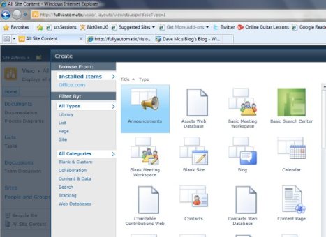 and lo and behold, I saw the following Silverlight screen for selecting the template of the site I wanted to create. Wicked!