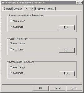 Once you’re there right-click and select Properties, then select the Security Tab and then click the Edit … button in the launch and Activation Permissions section.