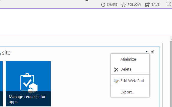 Anyhow, I noticed this strange behaviour on Office 365. The menu button for the web parts appeared to have changed and all you can do is to minimise or maximise the web part.