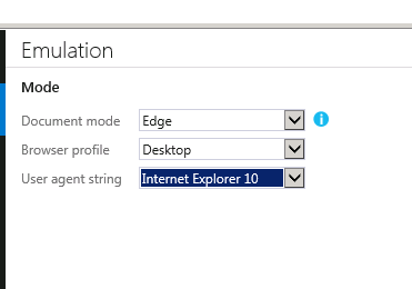 So back to IE and using the F12 tools, sure enough if I switch the User Agent String to IE10 but leave document mode as Edge