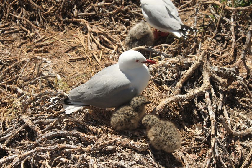We finally got to the headland but were a bit early so we headed for a cafe just along a rough track from the Albatross Centre at a place called Natures Wonders and had a nice pot of tea looking out over the windswept sea and headland. Time for our tour, so we headed back down the track to the Albatross Centre and checked in for our tour. We waited with others and then at the behest of a cheerful guide we were ushered into a room with a massive video screen. We were then given a video all about the albatrosses which started off well, stating that the nearest land based relative of the albatross is in fact the humming bird. Well, I never did! But after that the video kept going, and going, and going. After 25 mins I was getting a bit agitated, we’d come to see live albatrosses not a frikkin’ video. After another 5 mins we eventually were allowed out and up the hill towards the observation point. Above us were circling red-billed gulls and albatrosses, a couple of Royal Albatrosses, so that was good. We were then taken into the observation hut and the guide who had been talking continuously, carried on talking, and talking and talking … Any chance you can shut up please so we can watch these wonderful birds …? Oh wait , what there are only 4 of them? And they’re all the way over there?