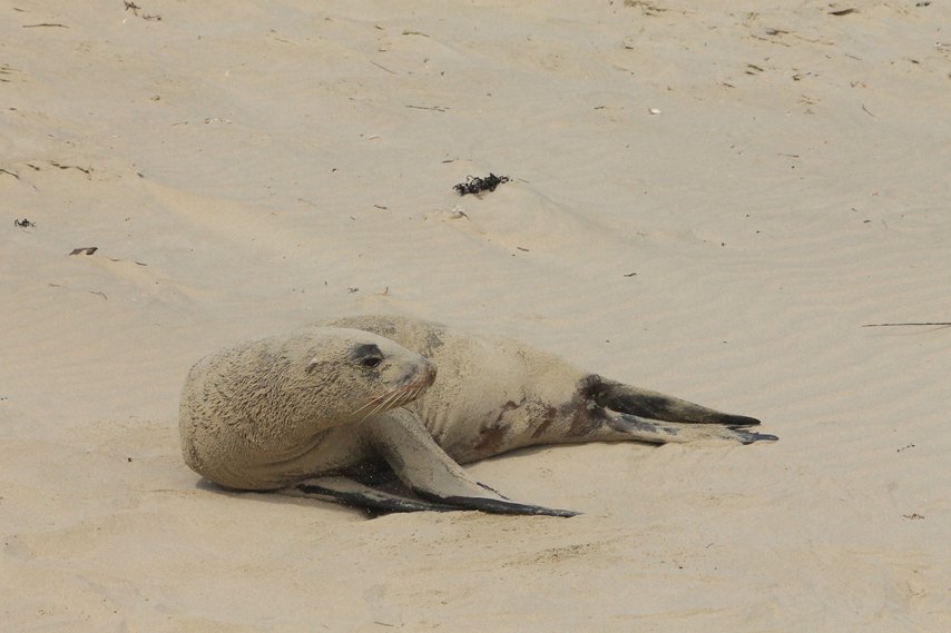 The next day we headed South again, heading for the region known as the Catlins on the South Eastern side of South Island. Our target was Nugget Point Lighthouse and also Roaring Bay to try to see the Yellow-Eyed Penguin. The weather was good setting off and stayed fair as we approached Nugget Point. As we approached Nugget Point we saw a sea lion on the beach right by the road, so we had to stop of course and get it’s picture! Here’s something we learned. How do you if know it’s a sea lion or a fur seal? Sea lions bask on beaches, fur seals on rocks. Simple.